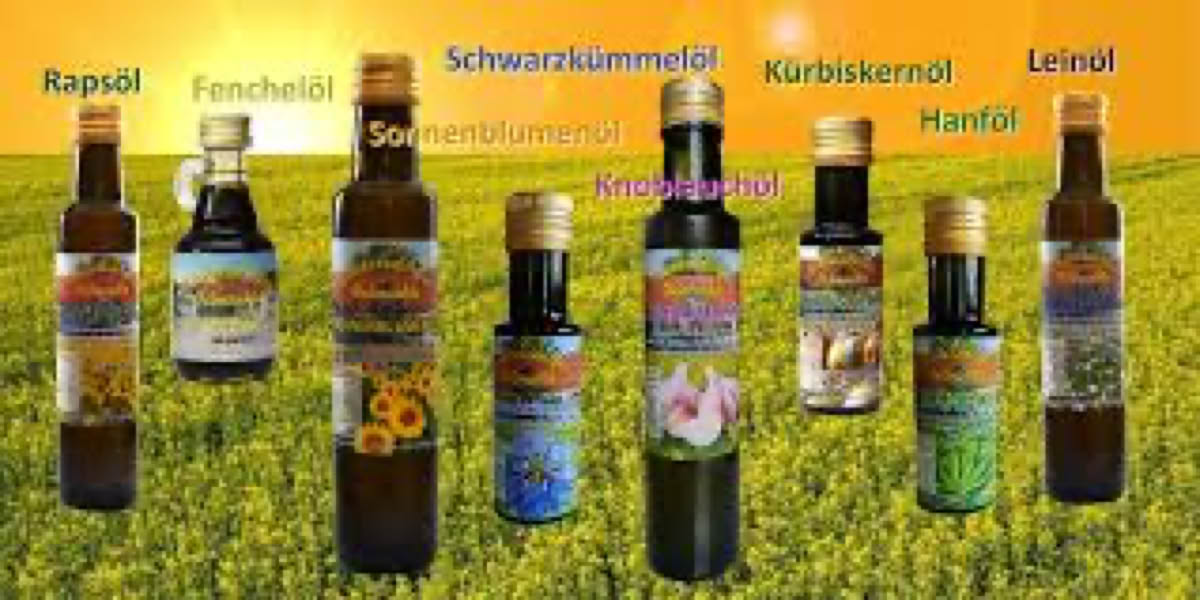 Frisch und kaltgepresst aus eigenem Anbau. Dieses so schonend gewonnene Öl hat eine hervorragende Fettsäurezusammensetzung und kann so positiv auf Ihre Gesundheit wirken. Die ca. 60 % an einfachen ungesättigten Fettsäuren und die ca. 32 % an lebensnotwendigen, mehrfach ungesättigten Omega 6 und Omega 3-Fettsäuren, wie Linolsäure und Linolensäure, machen unser Speiseöl für Ihre Ernährung so wertvoll. Auf dem Markt können Sie die verschiedenen Öle kennenlernen sowie Honig aus der Region.